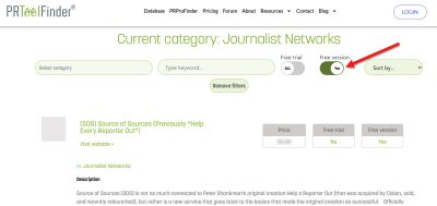 PRToolFinder user — including free-tier users — can instantly filter for tools that offer either a free version or a free trial.